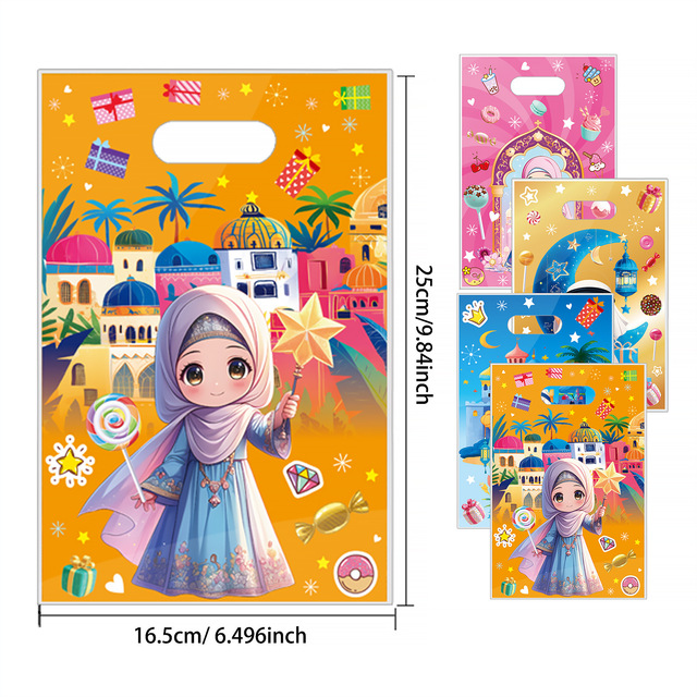 6 יחידות שקיות אריזה לא ארוגות לממתקים, עוגיות וחטיפים לחג הרמדאן, שקיות לא ארוגות עם ידית, עיד מובארק
